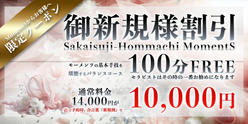【新規割】堺筋本町MomentS✨100分1万円で至福の体験